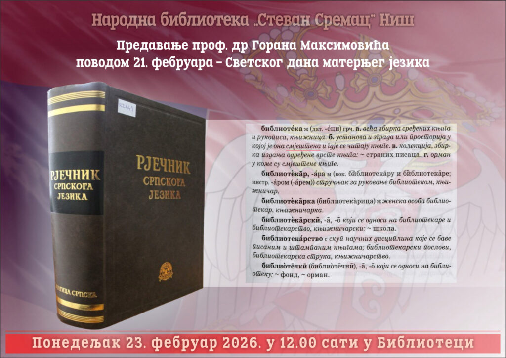 Predavanje O Rječniku srpskoga jezika u Narodnoj biblioteci ‘Stevan Sremac’