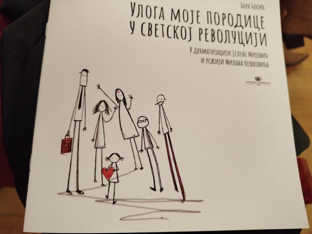 Predstava „Uloga moje porodice u svetskoj revoluciji“ po romanu Bore Ćosića, u režiji Milana Neškovića, premijerno će biti izvedena u Narodnom pozorištu u Nišu u petak, 17. aprila u 20 sati. Sve je spremno za premijeru, ekipa komada se predstavila na konferenciji za medije.